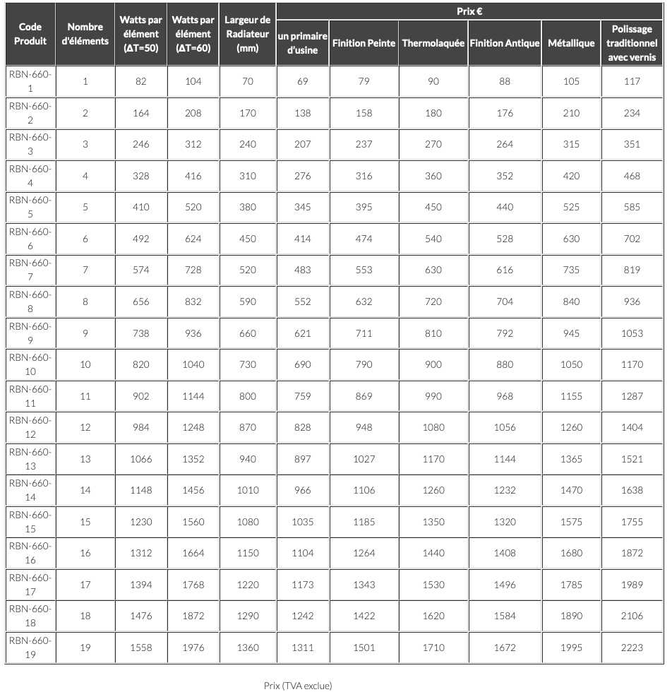 Longueur du radiateur (mm)